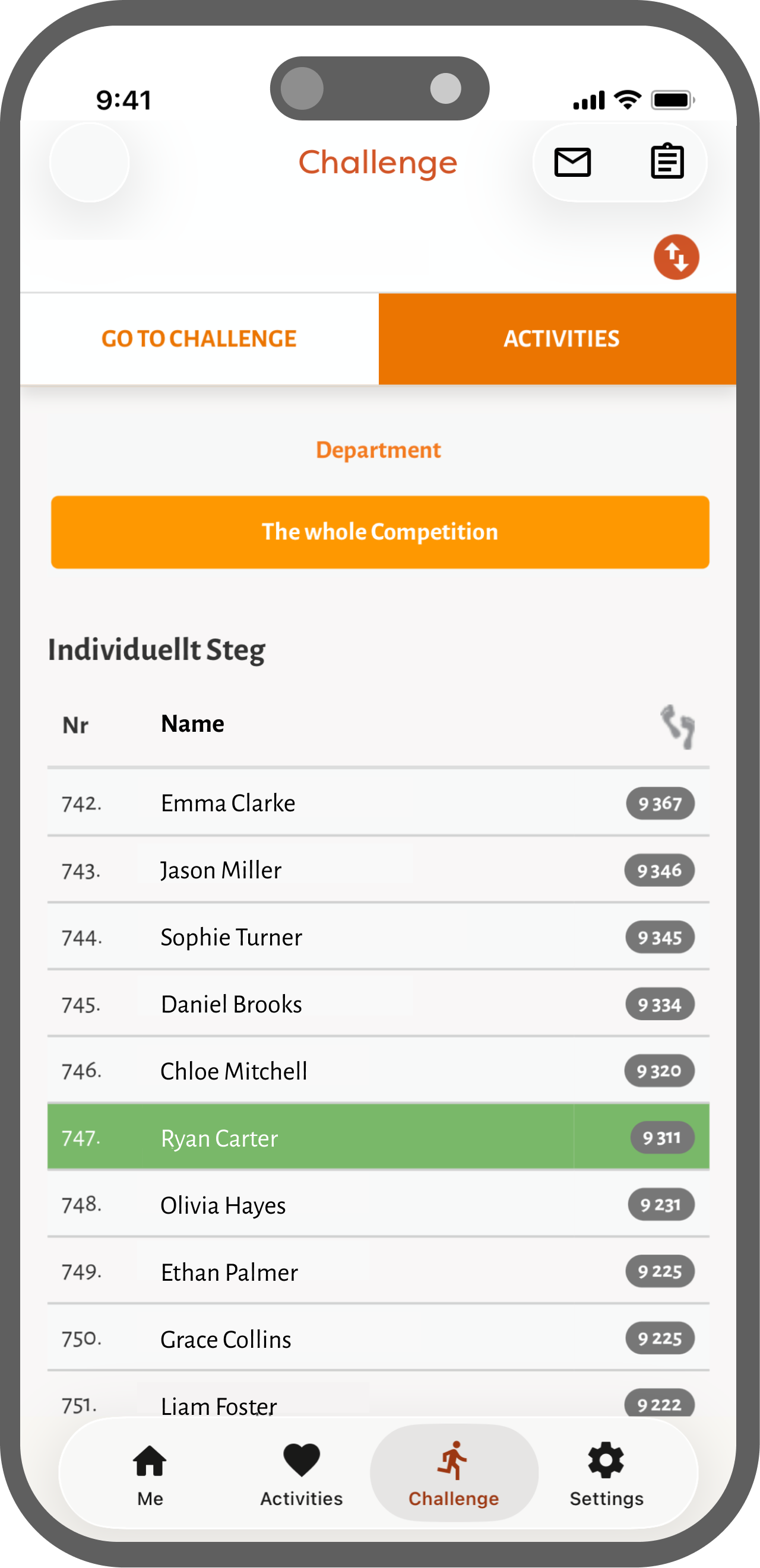 The activity table converts activities based on energy expenditure per minute, allowing different activities to be compared fairly. Example: 30 minutes of cycling equals 3,900 steps.
